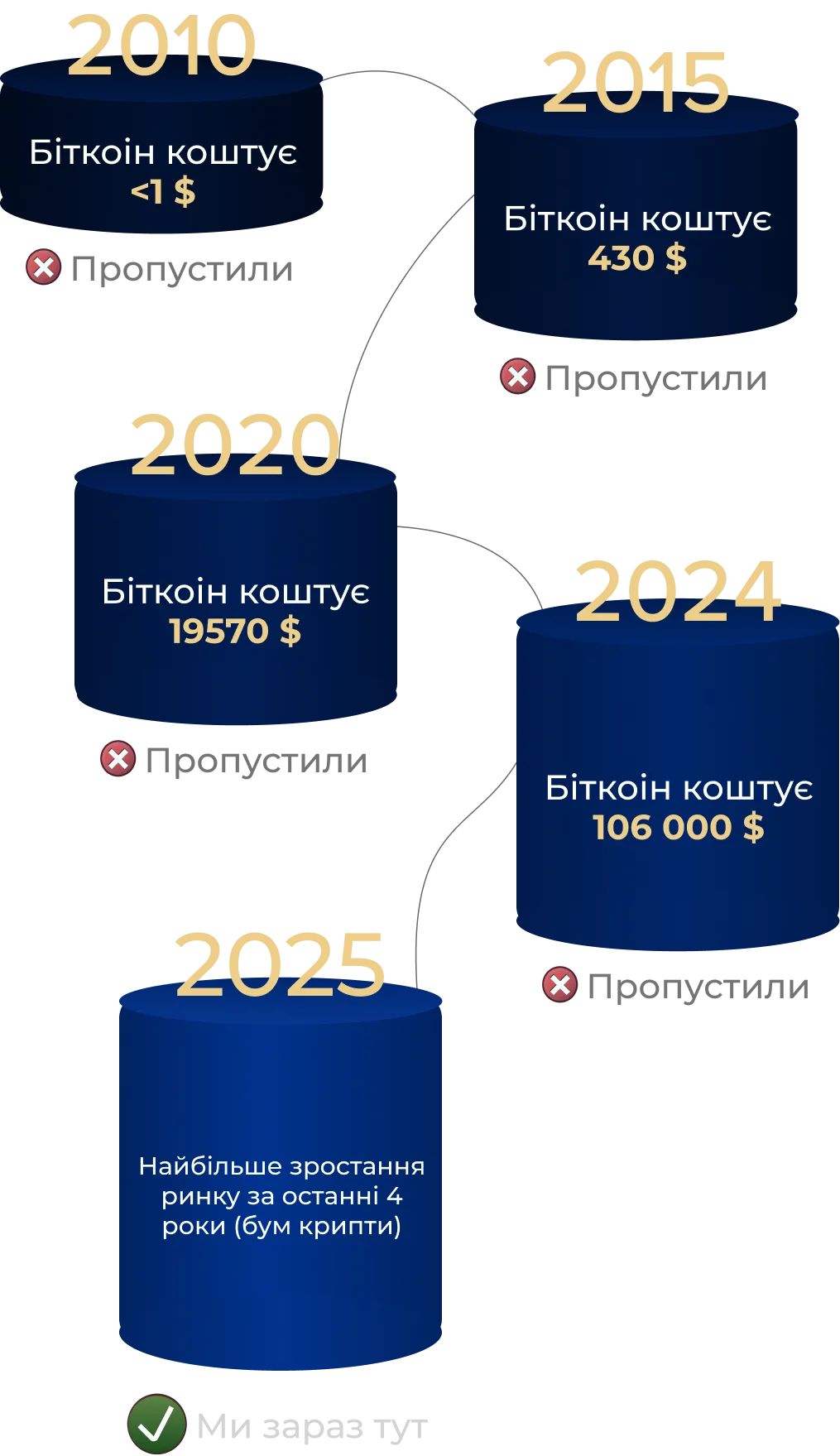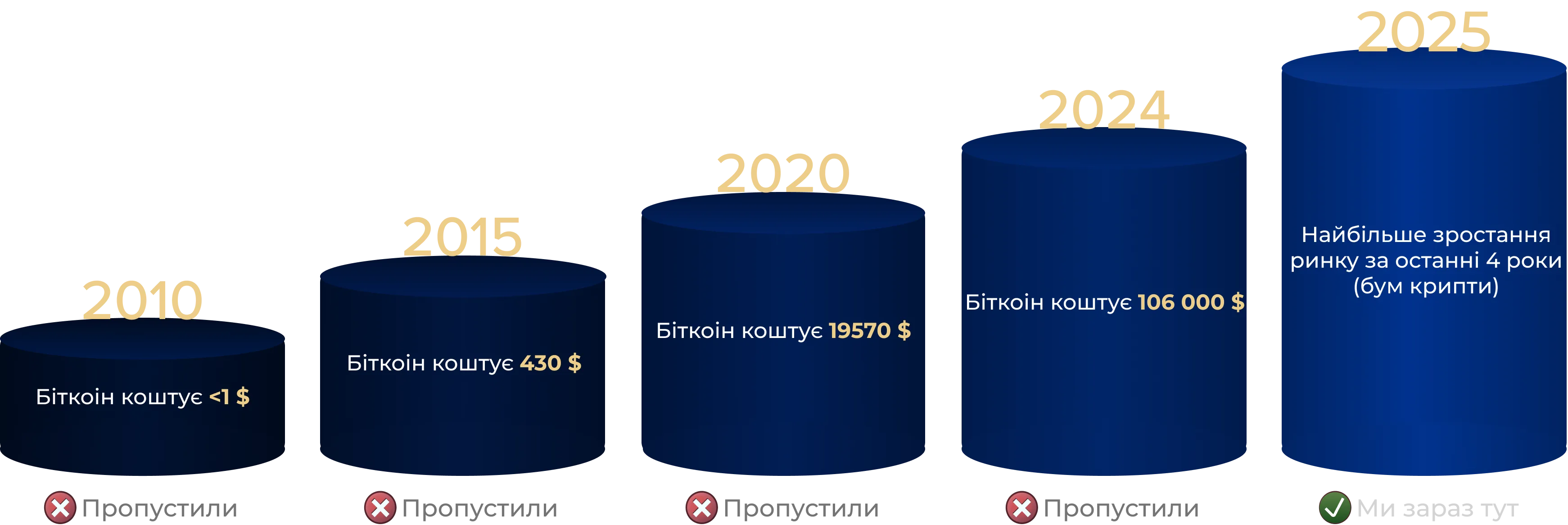 Ви отримаєте тверду базу у криптовалюті, зрозумієте як і за рахунок чого заробляти на прикладах реальних людей перед тим, як почати аналізувати монети та формувати інвестиційний портфель (про це на 2 уроці)